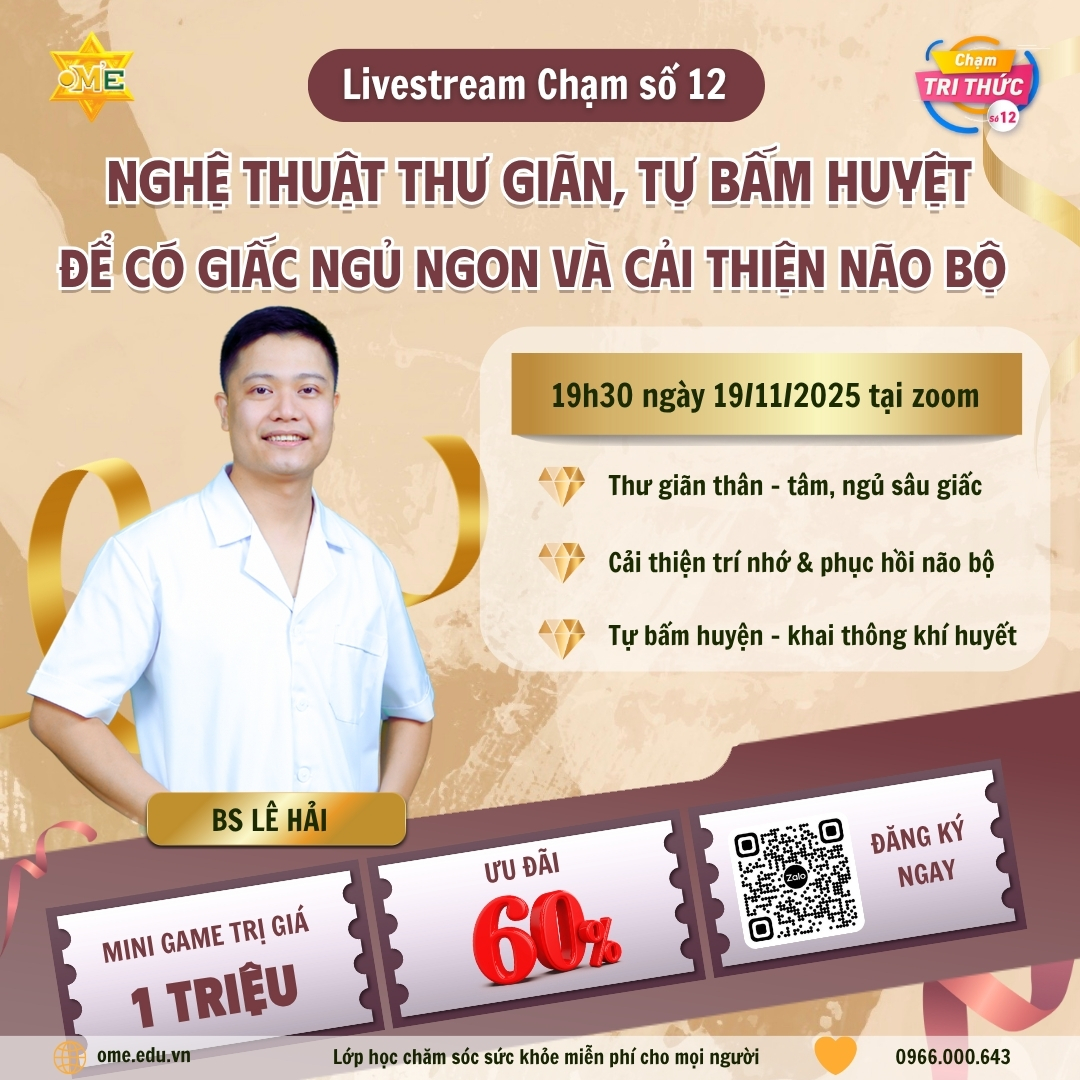 Hiểu được điều đó, OM’E Việt Nam mang đến Chạm Tri Thức Số 12 – Y Học với chủ đề: “Nghệ thuật thư giãn – Tự bấm huyệt để có giấc ngủ ngon và cải thiện não bộ”