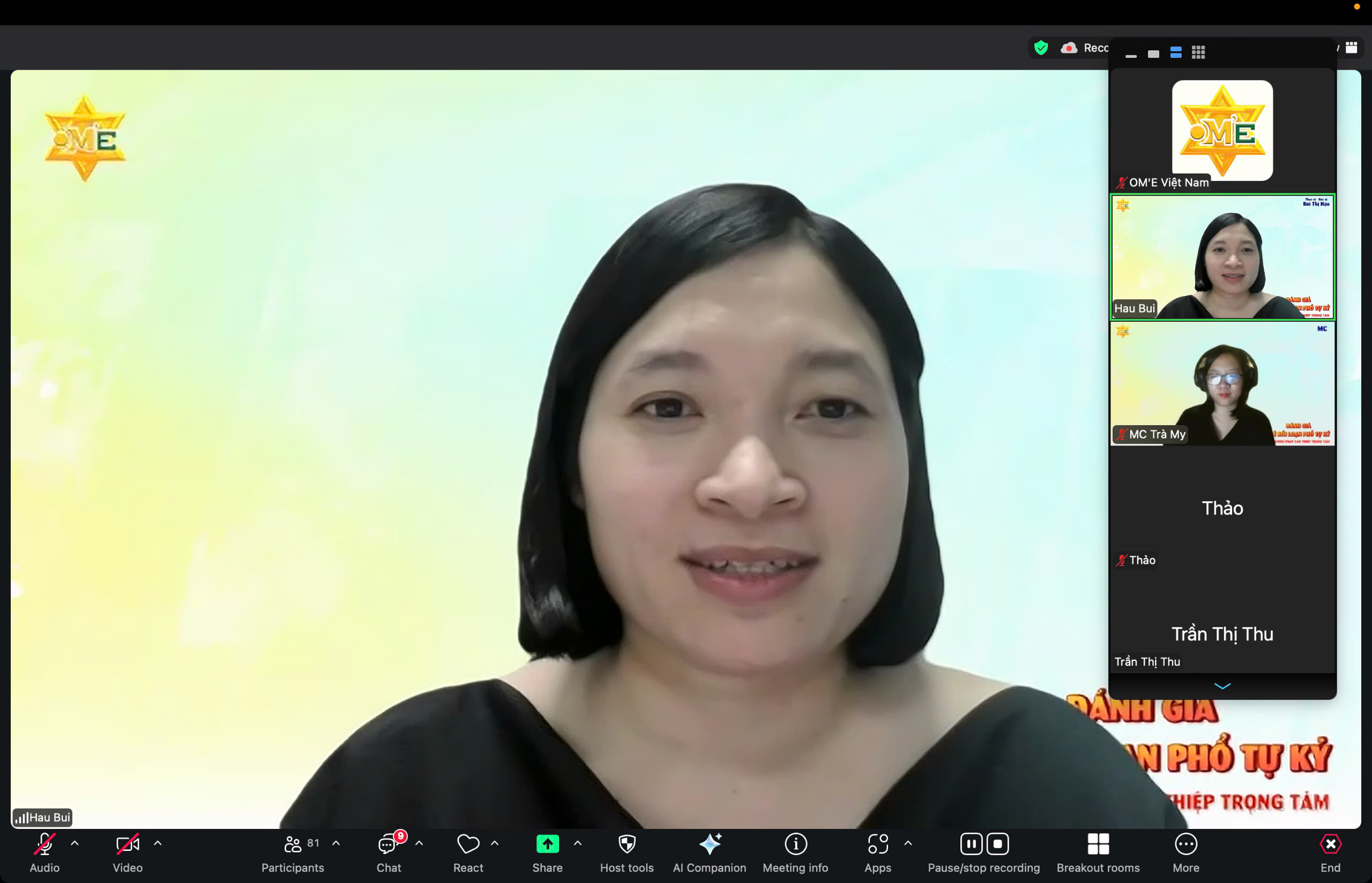 Phần mở đầu của chương trình tập trung vào việc cung cấp cái nhìn hệ thống về quy trình đánh giá toàn diện. Chuyên gia nhấn mạnh rằng, việc đánh giá chính xác là nền tảng quan trọng để phụ huynh và đội ngũ chuyên môn có thể xây dựng kế hoạch hỗ trợ đúng đắn cho trẻ. Những chia sẻ xoay quanh các công cụ đánh giá, cách quan sát hành vi, và việc “đọc” những tín hiệu tiềm ẩn đã giúp người tham dự hiểu rõ hơn tầm quan trọng của giai đoạn vàng trong can thiệp.